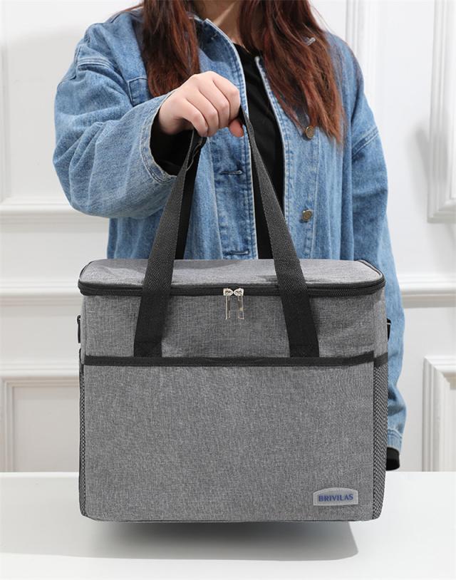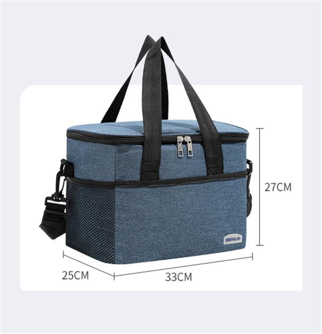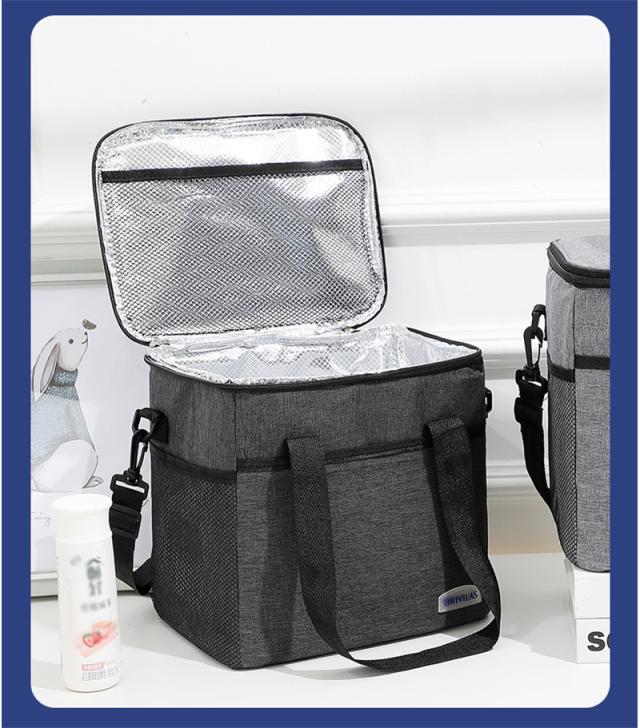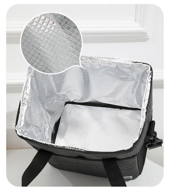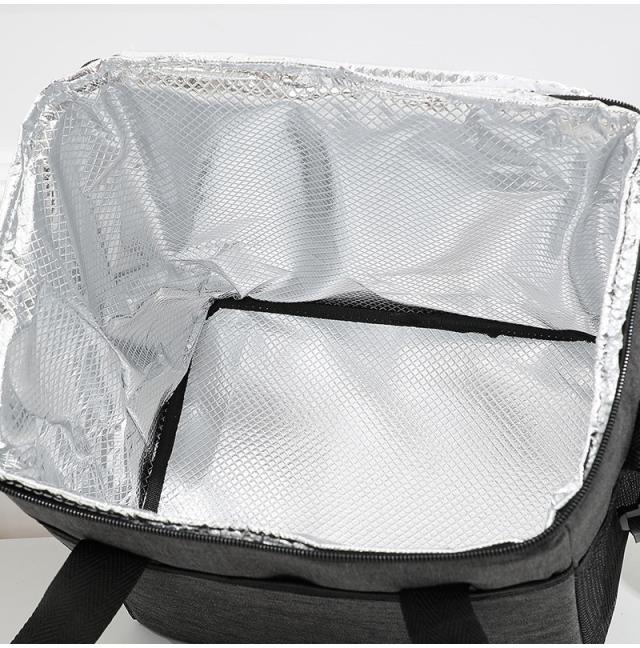 外生地はオックスフォード、中生地は厚いパールコットン、裏地は高品質なPEVAを使い、3層の断熱構造で高保温保冷効果が達成します。
