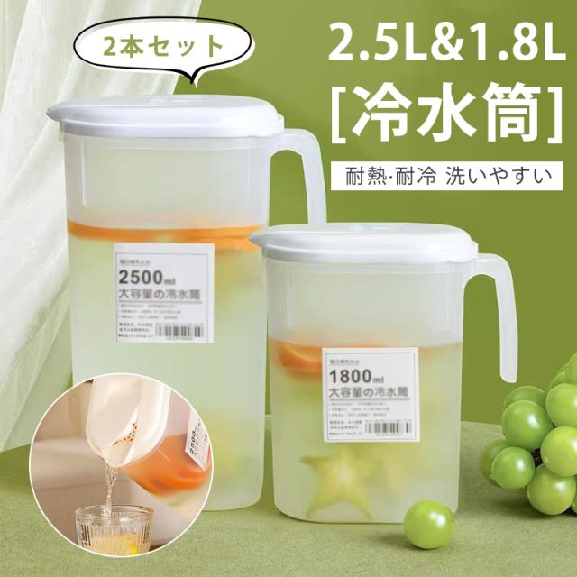 冷水筒 2本セット 冷茶ポット ドリンクピッチャー 水差し 軽量 ティーポット 耐熱 家庭用 2.5L&1.8L 耐久性 広口 業務用会社 持ちやすい