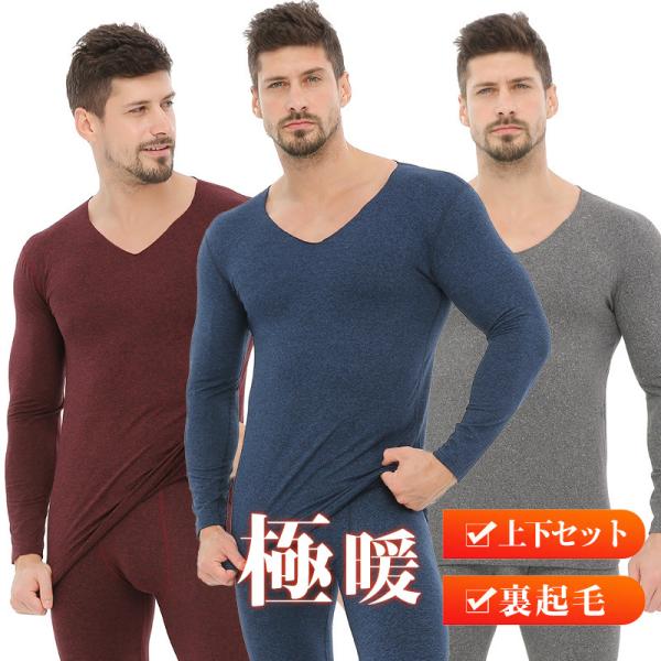 インナー メンズ インナーセット Vネック 発熱 上下セット シームレス 伸縮性 裏起毛 無地肌着 切りっぱなし 保温 暖かい 防寒 男女 送料無料