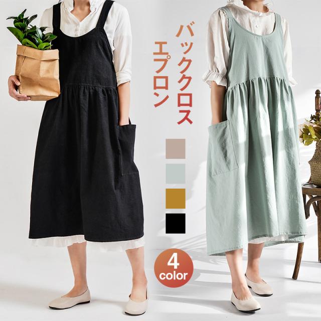 エプロン おしゃれ 保育士 チュニックエプロン 大きいサイズ 無地 綿麻 エプロンワンピース 普段の家事に 保育士 調理実習 ガーデニングなど