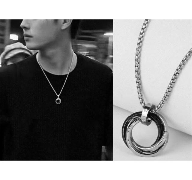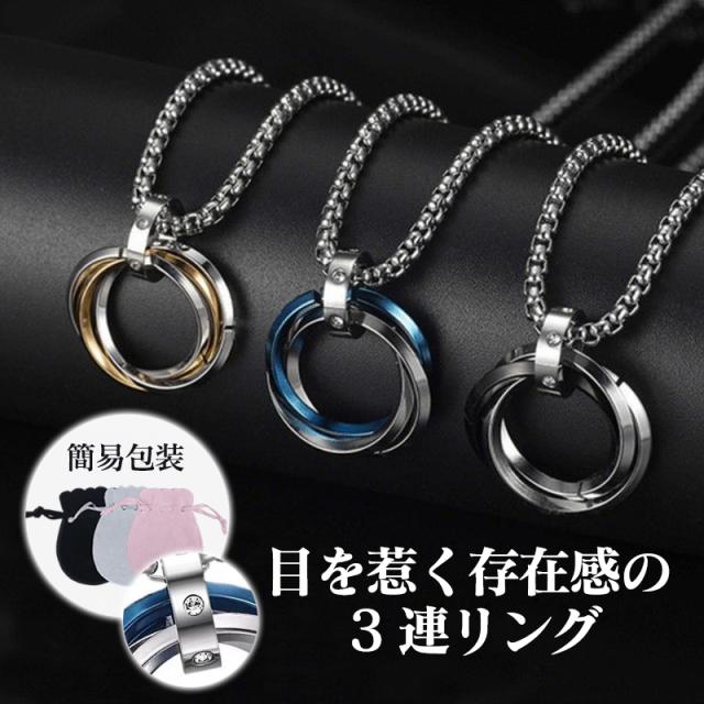 ネックレス 3連リング トリプルリング ユニセックス メンズ レディース ステンレス シンプル プレゼント 記念日 誕生日 ペア 父の日 母の日 敬老の日 カップル