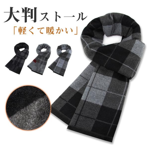ストール 大判 メンズ 簡単装着 秋 冬 ウールタッチ なめらか あったか マフラー 防寒 保温 男女兼用 コンパクト 肌触り ギフト父の日 送料無料