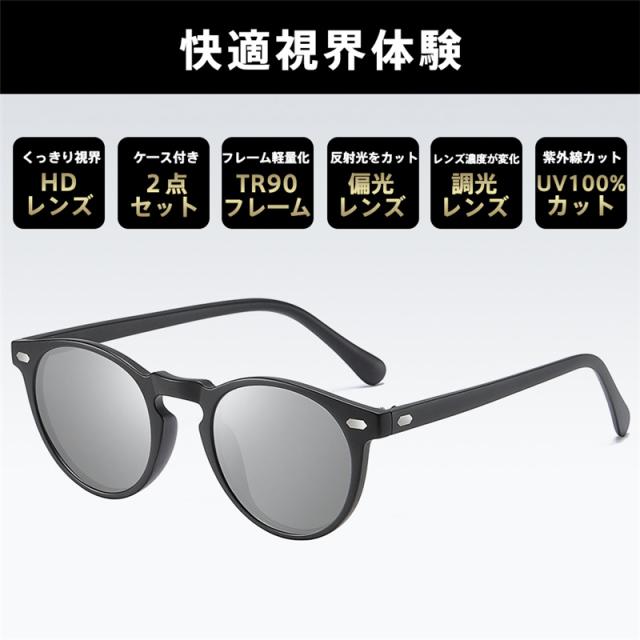 サングラス メンズ 偏光 調光 偏光サングラス 自動調光 軽量 即納 レディース UVカット ケース付き スポーツサングラス ドライブ 釣り 運転