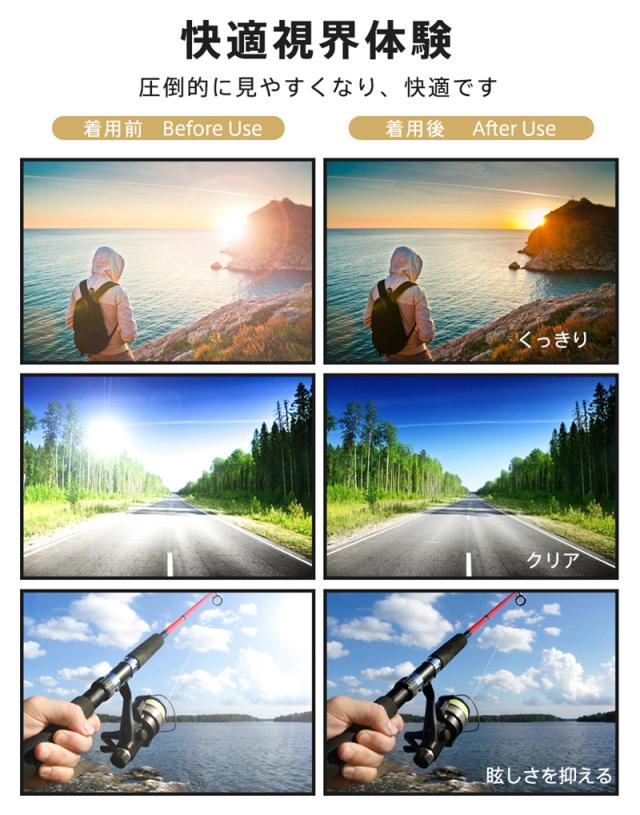 キラキラする反射光や照り返しの光の乱反射をカットすることでクリアな視界に調整します。