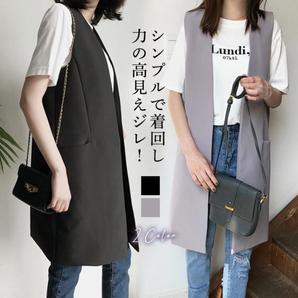 ジレ ベスト レディース ロング丈 春夏 トップス ロングコート ノースリーブ 一部即納 ロングジレ 無地 秋 羽織り ゆったり 大人 オフィス 通勤 OL