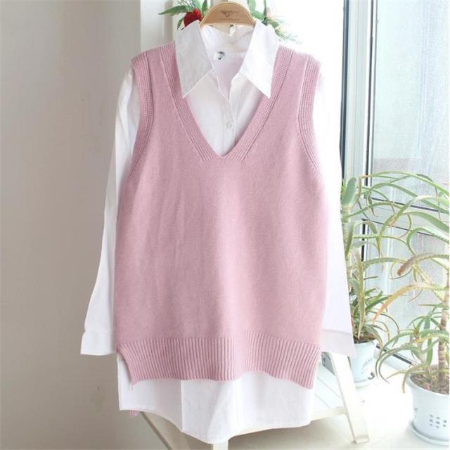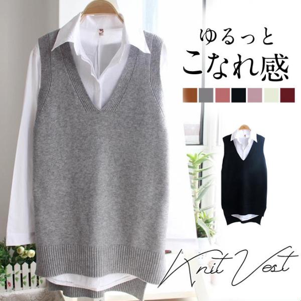 ニットベスト レディース チョッキ トップス Vネック 薄手 ゆったり 一部即納 プルオーバー ベスト ジレー セーター 無地 秋コーデ カジュアル 重ね着