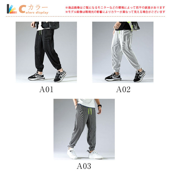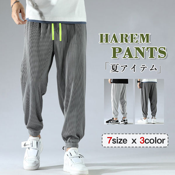 ジョガーパンツ サルエルパンツ メンズ ボトムス カーゴ ストライプ柄 一部即納 ゆったり かっこいい 冷感 涼しい ウェストゴム スポーツ 薄手 通気性 快適