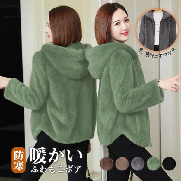 ボアジャケット ボアブルゾン レディース ボアコート フェイクファー もこもこ ふわふわ 暖かい ゆったり 可愛い カジュアル フード付き 送料無料