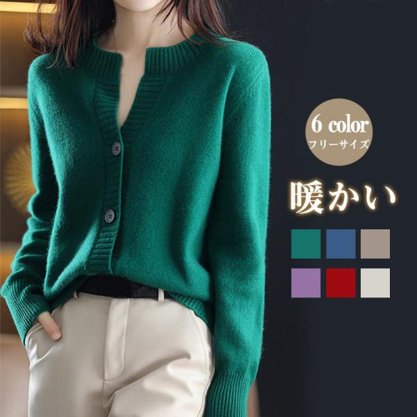 カーディガン レディース ニット Vネック 柔らか 長袖 無地 秋冬春 羽織り シンプル 一部即納 ベーシック カジュアル 上品 ゆったり 細見え トップス
