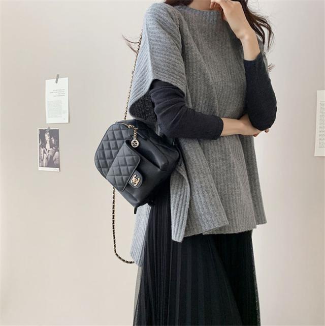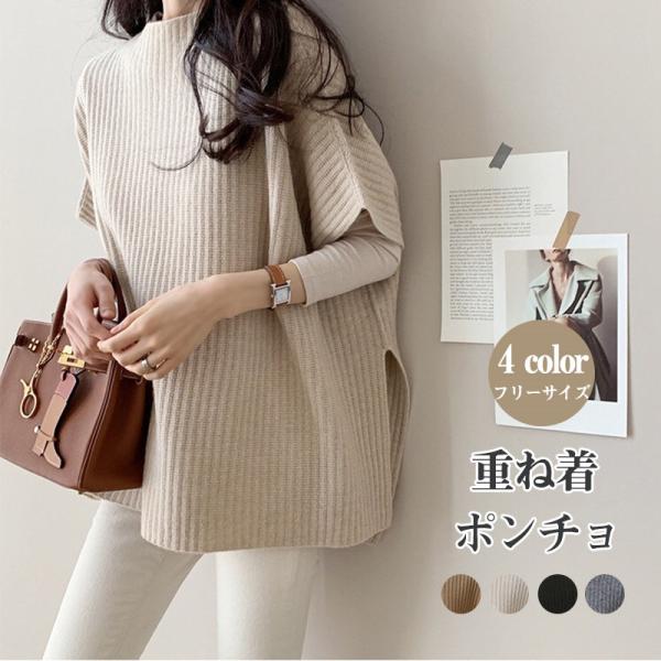 ニットベスト レディース ポンチョ チョッキ ベスト ジレー ローゲージニット 一部即納 ゆったり プルオーバー セーター 無地 秋コーデ カジュアル 重ね着