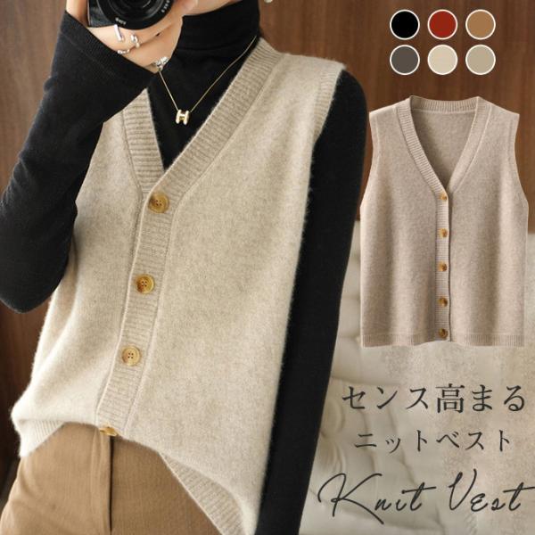 大特価!ニットベスト レディース ウール チョッキ トップス Vネック 柔らか ゆったり 一部即納 前開け ジレー セーター 無地 秋コーデ カジュアル 重ね着