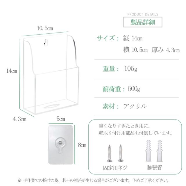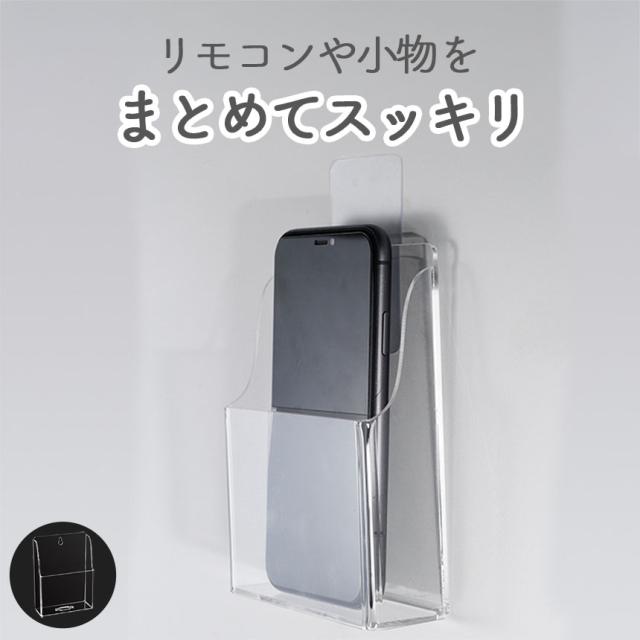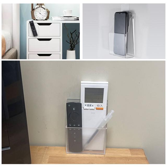 リモコンホルダー アクリル 1列収納 壁掛け 充電電話ホルダー メディア 収納ボックス オフィス用 クリア リモコンスタンド リモコン収納ボックス シンプル おしゃれ エアコン ケース TV スマートフォン 整理 ラック 小物入れ サニタリー デスク オフィス 玄関 洗面台