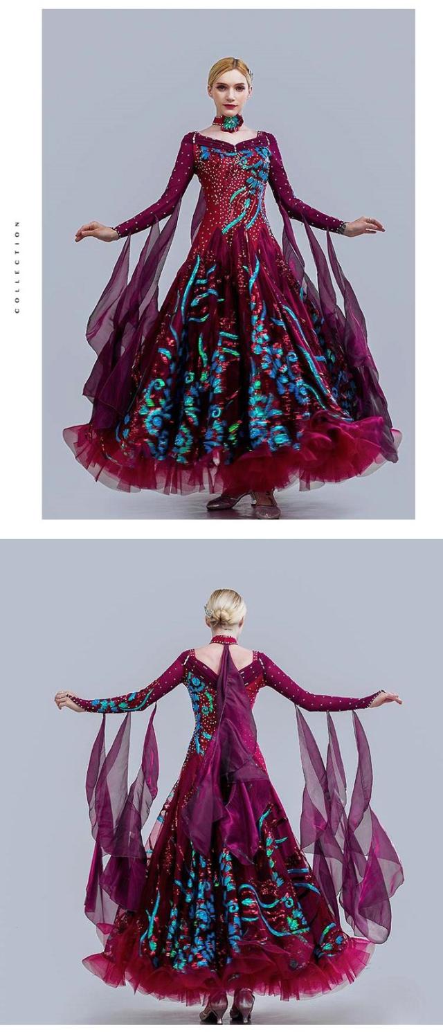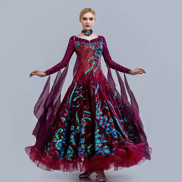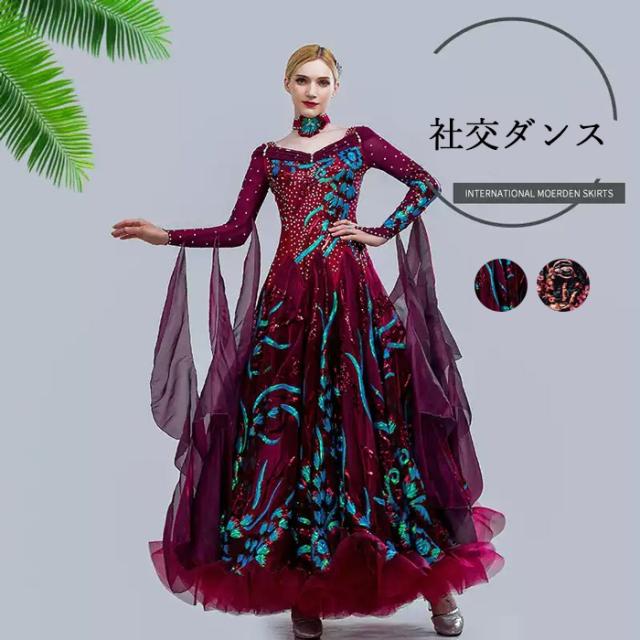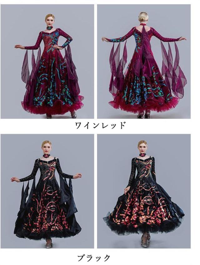 高品質 社交ダンス ドレス 長袖 スタンダード 社交ダンス衣装 ワンピース 黒 広がる裾 ワンピース スタンダード レッスン着 発表会 競技着 練習着 演出用 スタンダード ワルツ専用ドレス ロング丈 オールシーズン be154zbzbm5
