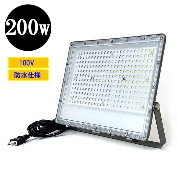 LED投光器 LEDライト 200W 2000W相当 防水 AC100V 3Mコード 薄型 白色