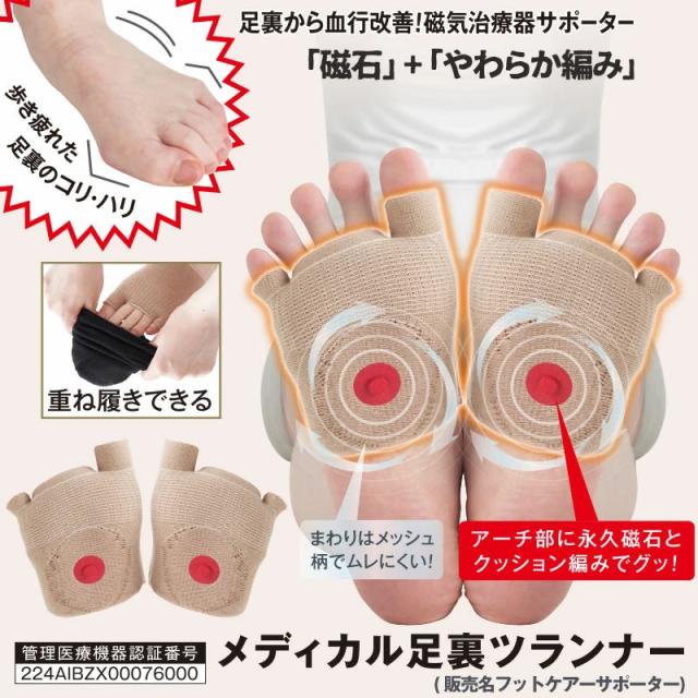 【管理医療機器】メディカル足裏ツランナー (メール便送料無料) コリ 血行の改善 磁気 磁気治療器 足裏サポーター 磁気サポーター 外反母趾対策 着圧