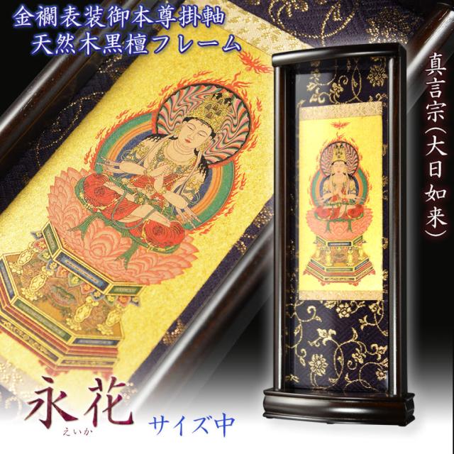 国産掛軸【モダン掛軸:本尊掛軸・黒檀製スタンド 永花(えいか)大日如来(真言宗)中サイズ】