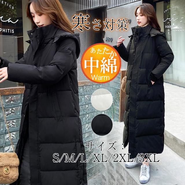 中綿コート ロングダウンコート レディース ダウンジャケット 超ロング 中綿ジャケット フード付き 防寒着 ゆったり 暖かい 通勤 冬アウター 黒 白
