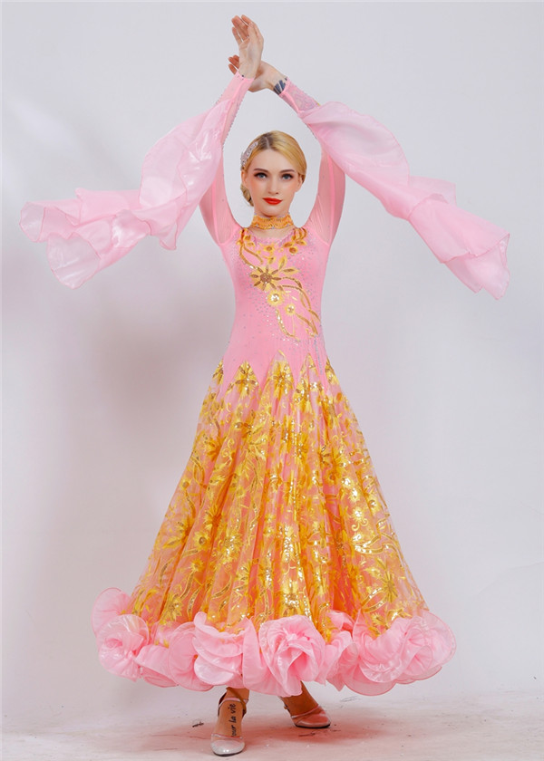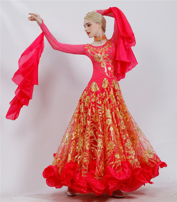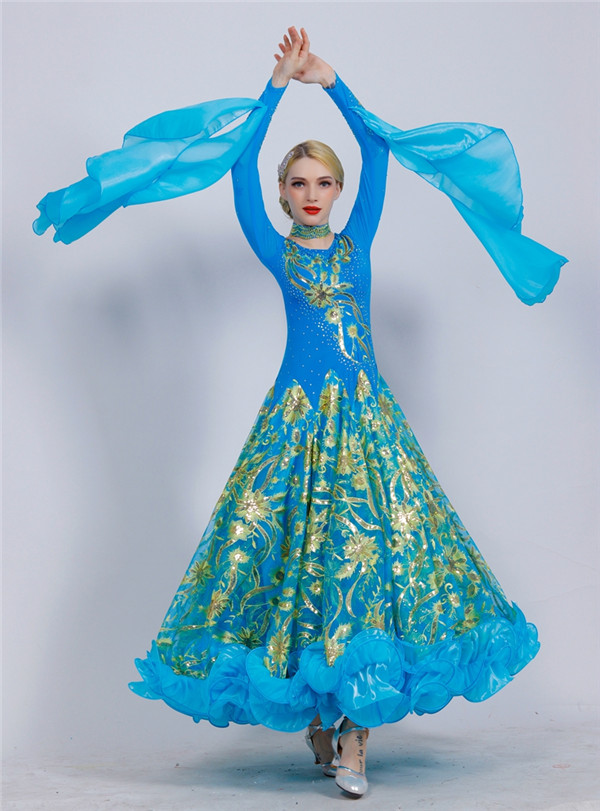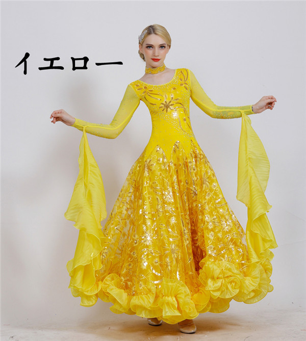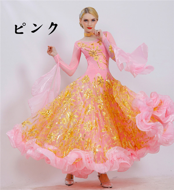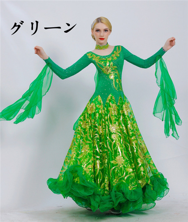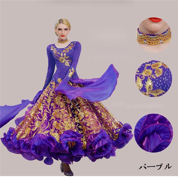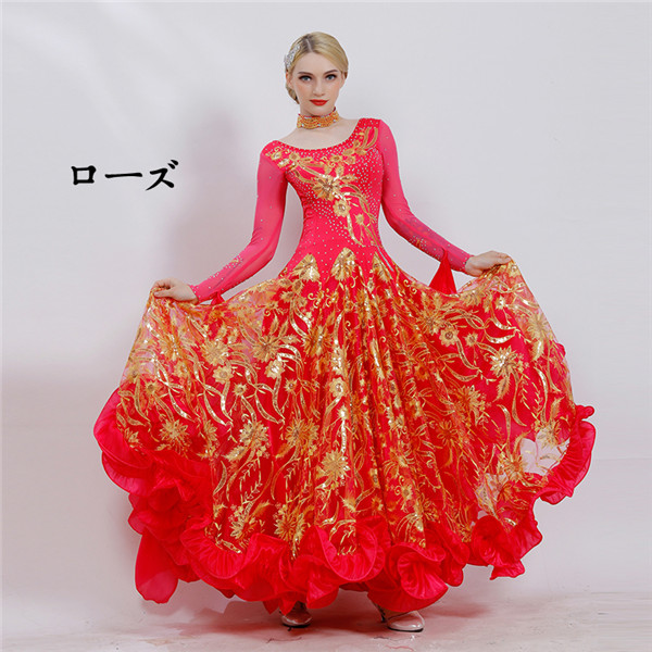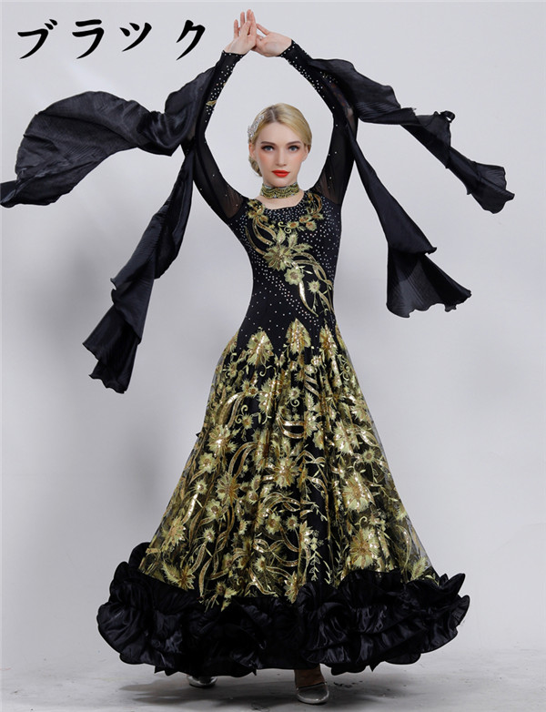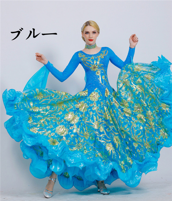 新作 社交ダンス 衣装 モダンドレス ラテンドレス ラテン衣装 社交ダンスドレス 大きい裾 豪華なドレス ダンス衣装 ワンピース S~2XL ダンス衣装 ダンス発表会 競技着 練習着 演出用 スタンダードドレス ワルツダンス d1003d3d3m5