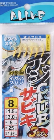 お買い得サビキ 3枚入 ファイブスター アライブ アジCLUBサビキ ホワイトスキン 針10号 ハリス3.0号 幹糸4.0号 / 仕掛け つり具 メール便可