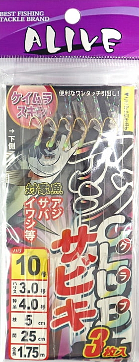 お買い得サビキ 3枚入 ファイブスター アライブ アジCLUBサビキ ケイムラスキン 針9号 ハリス2.0号 幹糸4.0号 / 仕掛け つり具 メール便可