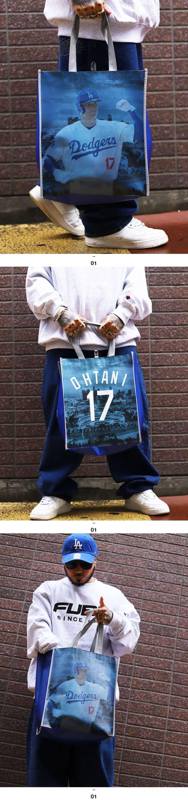 トートバッグ ドジャース 大谷翔平 選手 写真 公式 リサイクル素材 背番号17 メンズ レディース 春夏秋冬用 青 MLB Dodgers BAG 大きめ 大容量 A4 B4 手提げ バック おしゃれ かっこいい 大谷グッズ ドジャースグッズ OHTANI ストリート系 ブランド 限定品 新作 sandy-1