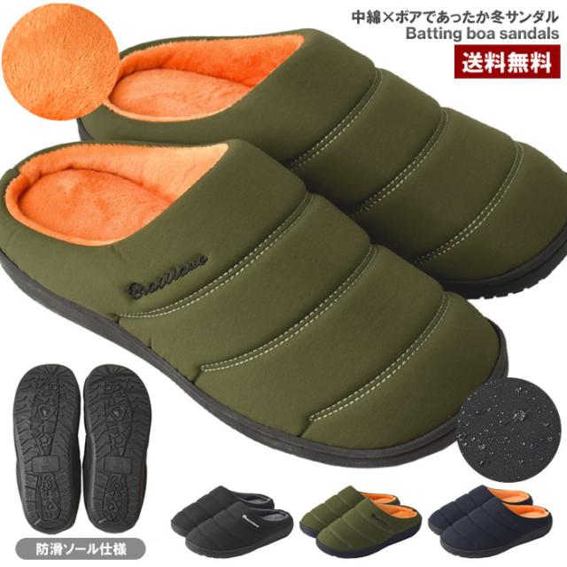 メンズ 冬サンダル シューズ 中綿 起毛 ボア 撥水 アッパー 防滑ソール スリッポン 保温 オフィス お出かけ 街歩き【S1H】