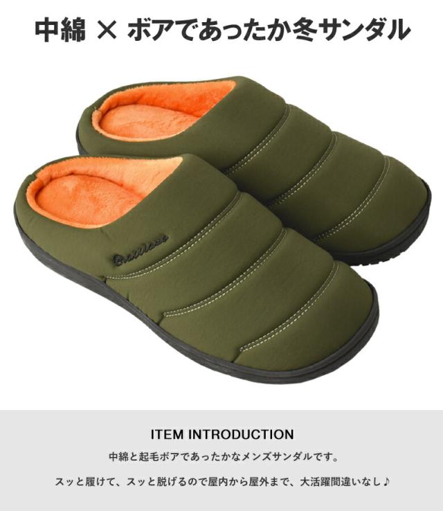 中綿と起毛ボアであったかなメンズサンダルです。 ※お客様のディスプレー環境により色が多少違って見える場合がございます。予めご了承ください。 |