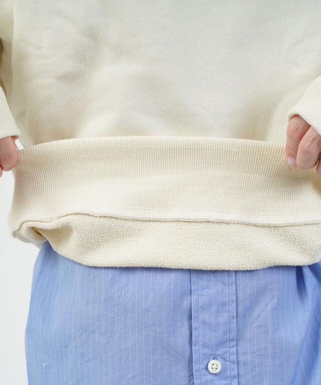 衿ぐりにはガゼットで着心地とカジュアルさをプラス、ルーズなシルエットに。