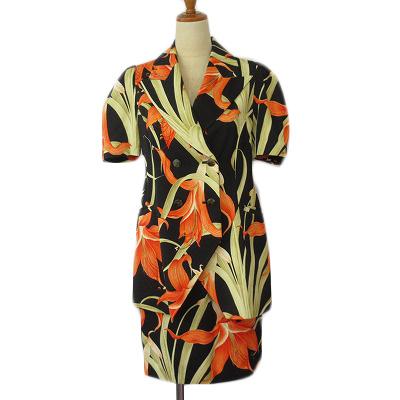 【中古】ビバユー VIVA YOU ヒロミチナカノ 80s 日本製 スーツ 花柄 ジャケット 半袖 スカート M 黒 レディース