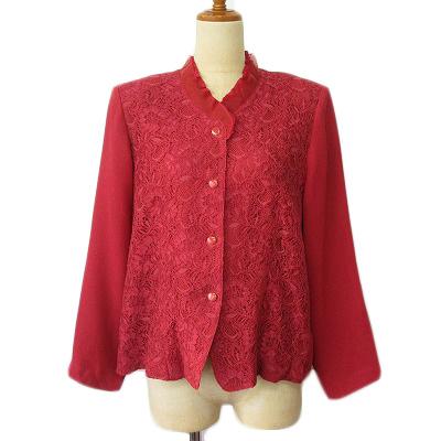 【中古】バンベール VINVERT 大きいサイズ ジャケット レース フリル シフォン 17 赤 レッド レディース