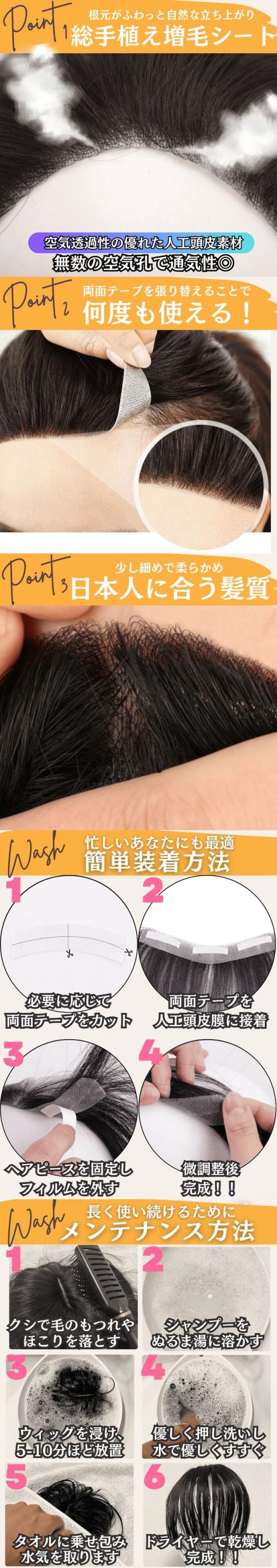 | 特徴2 | 植毛方法にもこだわり、職人による総手植え。ナチュラルな生え際 |