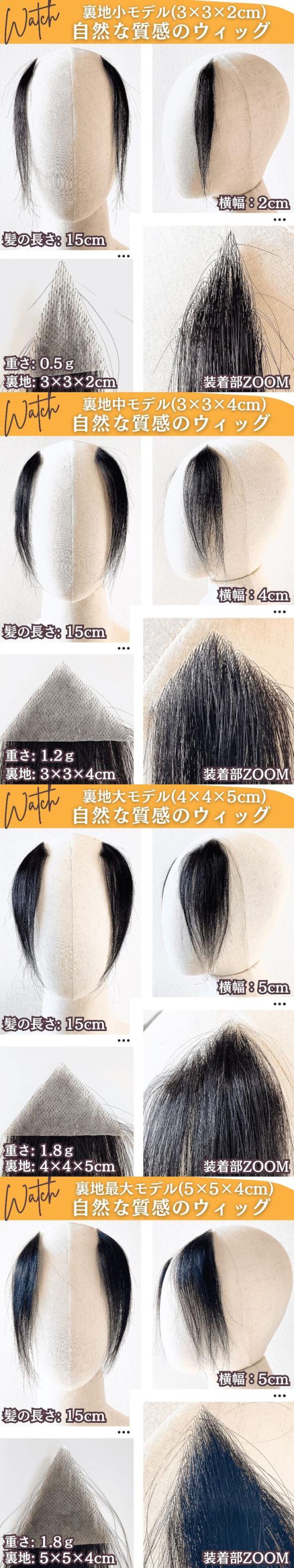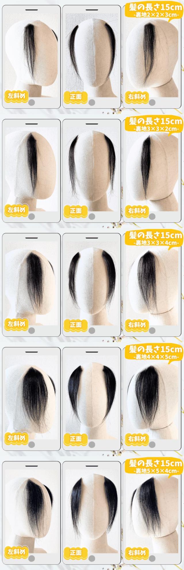 シートサイズ:2×2×3cm / 髪の長さ:15cm / 重さ : 0.5g シートサイズ:3×3×2cm / 髪の長さ:15cm / 重さ : 0.5g シートサイズ:3×3×4cm / 髪の長さ:15cm / 重さ : 1.2g シートサイズ:4×4×5cm / 髪の長さ:15cm / 重さ : 1.8g シートサイズ:5×5×4cm / 髪の長さ:15cm / 重さ : 1.8g |