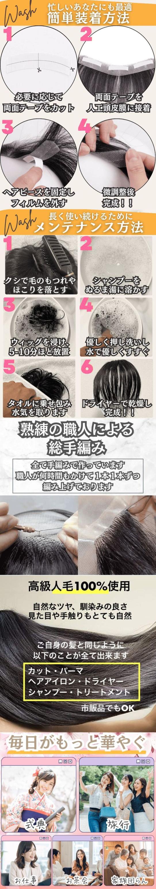 | 特徴2 | 植毛方法にもこだわり、職人による総手植え。ナチュラルな生え際 |