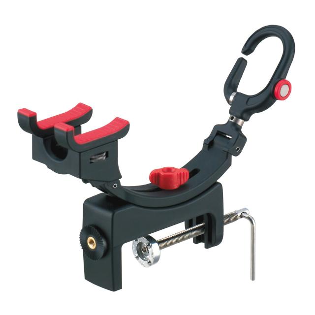 クランプはタテヨコ取付が可能で竿受の首振り・角度調節も自由自在です。