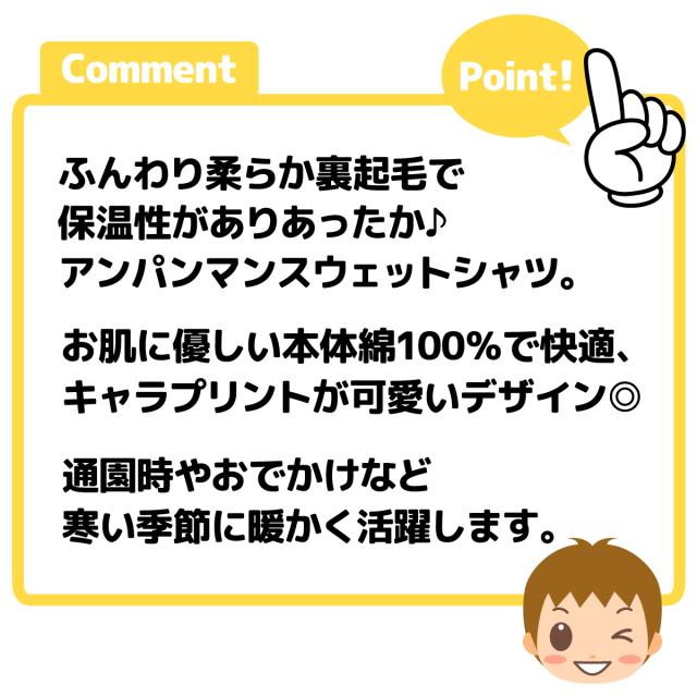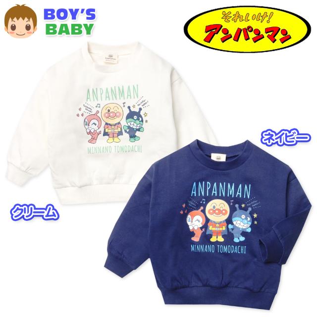 【送料無料】男児 ベビー 裏起毛 長袖 スウェット シャツ アンパンマン 本体綿100% あったか素材 保温 ベビー服 男の子 80cm 90cm 95cm iw-1209【メール便対応】
