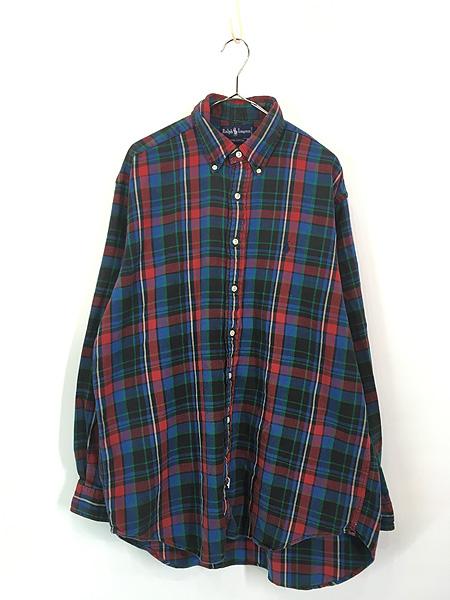 古着 90s Ralph Lauren マルチ チェック フランネル BD シャツ ネルシャツ L 古着