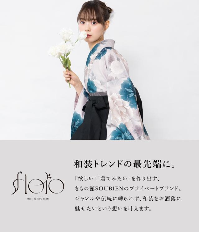 袴セット 卒業式 大学生 小学生 レディース 女の子 セット 創美苑オリジナル floro ピンク 青 紺 黒 花 和装 着物 販売 購入 送料無料
