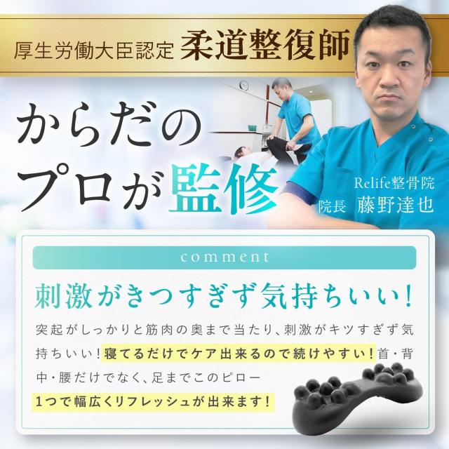【マッサージのプロ共同開発】マッサージの専門家、柔道整復師の先生と共同開発により生まれた高品質な肩甲骨ストレッチピロー。すきま時間に気軽にセルフマッサージを楽しめます。