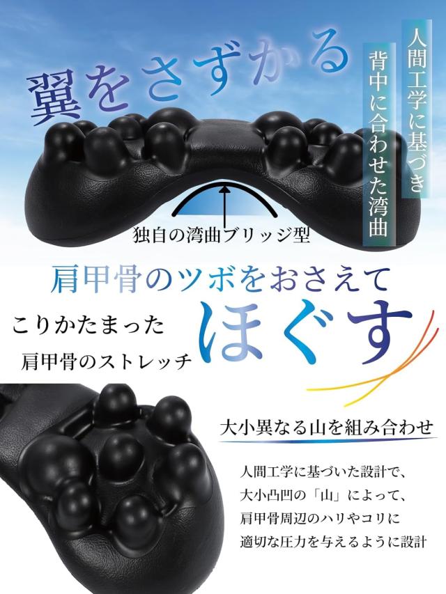 - 長年肩甲骨のこりに悩まされていたので購入しました。 毎日暇があると使用していると肩甲骨のこりも随分解消されました。引き続き使っていきたいと思います。