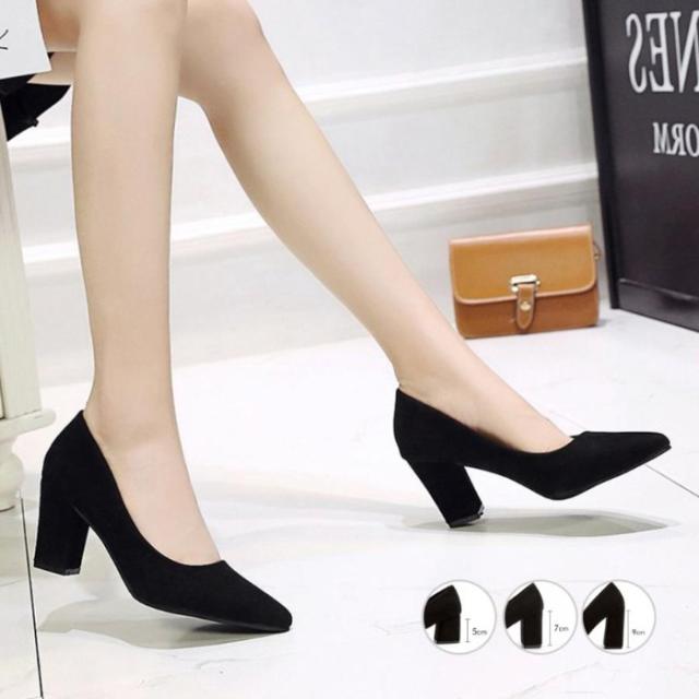 美脚と歩きやすさを兼ね備えた5cm/7cm/9cmヒールは、太ヒールなので長時間歩いても、疲れにくい