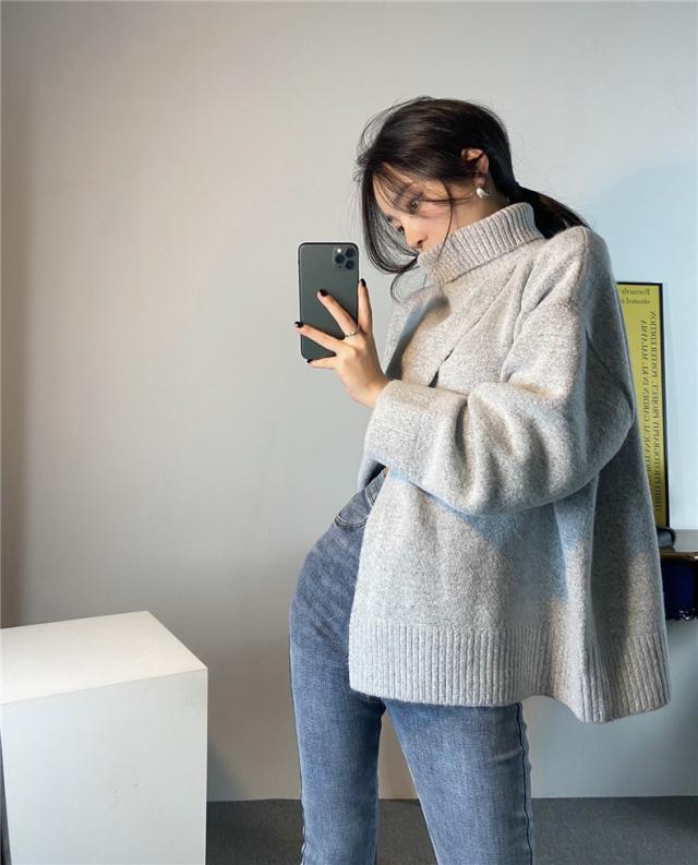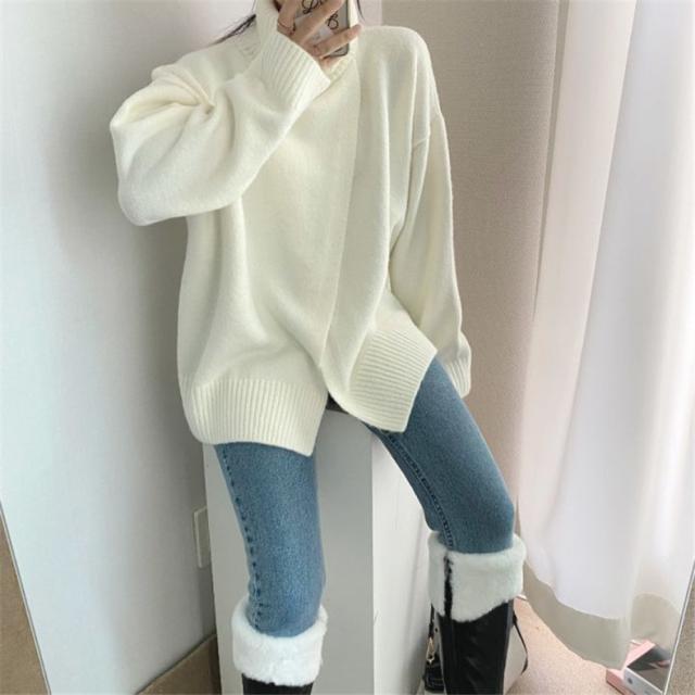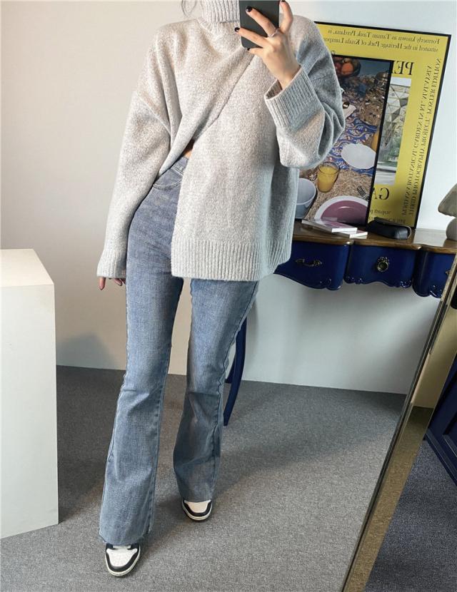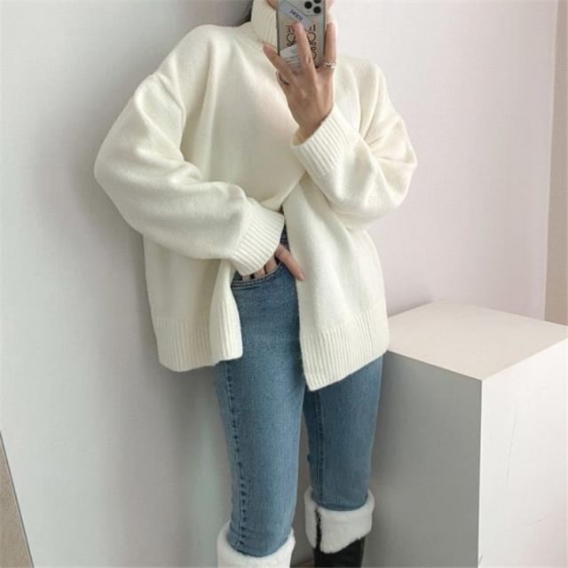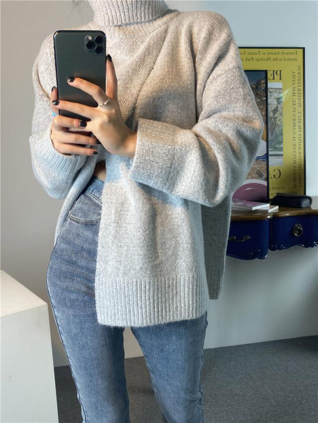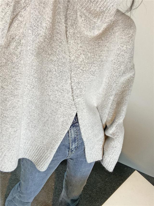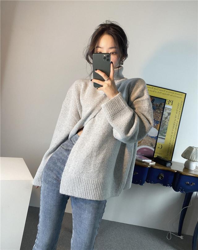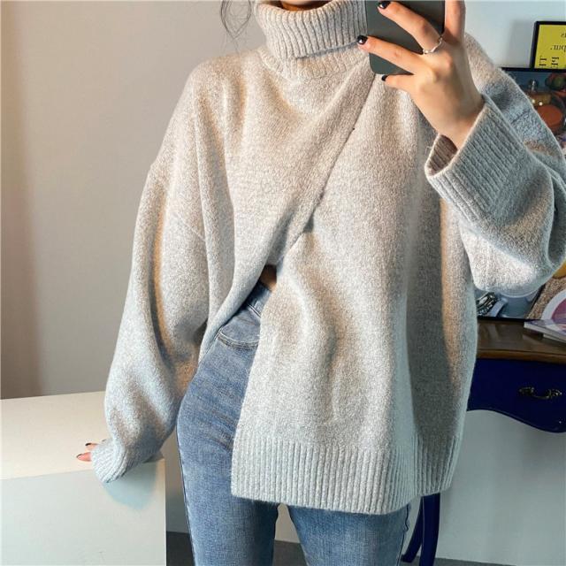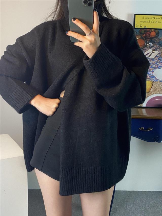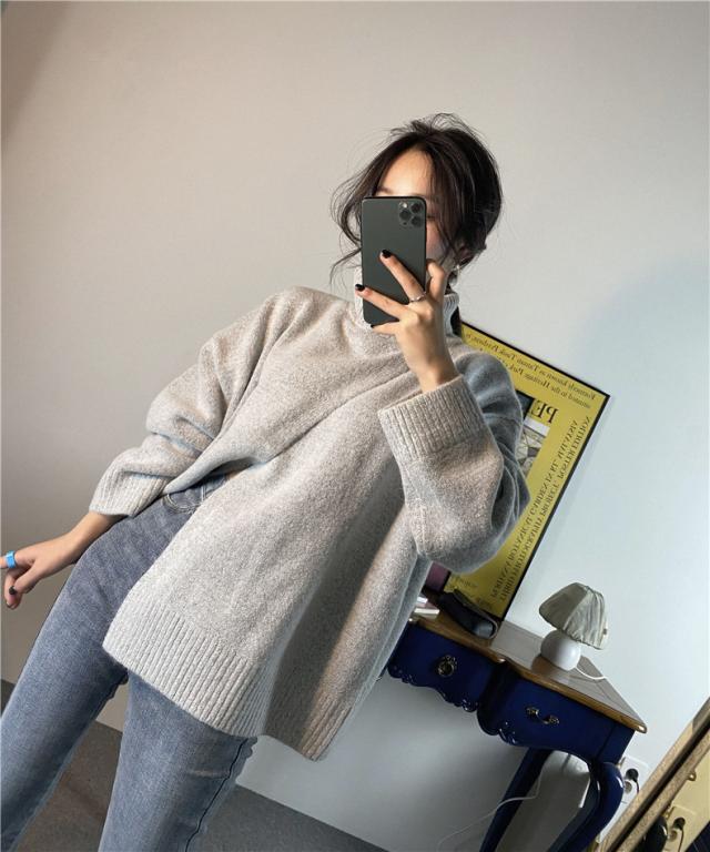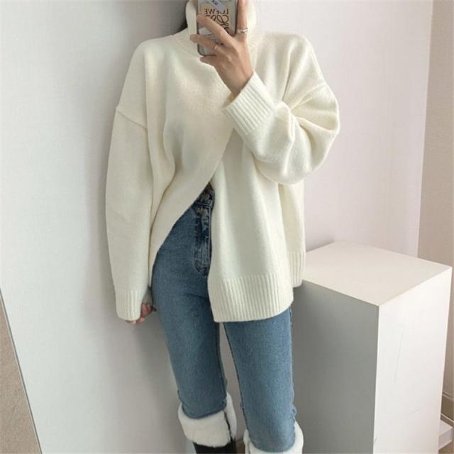 ニット レディース 秋トップス セーター プルオーバー 長袖 タートルネック フロントスリット 快適な着心地 ゆったりシルエット 1枚だけで女子力UP