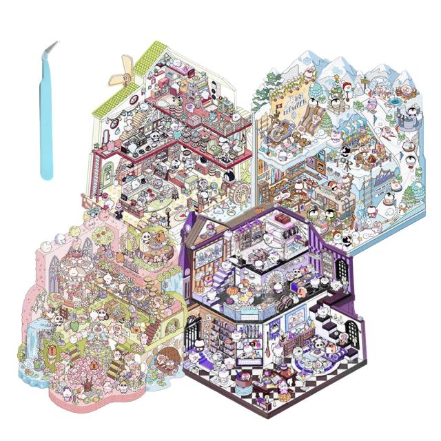 3D ハウスステッカー シーンシール 造景シール 立体 ステッカー 面白い 手帳 シール 可愛い 手帳素材パック ストレス解消 グッズ プレゼント diy おもちゃ ドールハウス 紙 ミニチュアハウス 初心者 3D小屋 手作りキット ピンセット付き