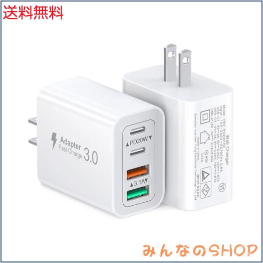 合計40W ACアダプター 急速充電器 USB コンセント 2個セット 携帯充電器 Type-C 充電器 4 ポート Type-C×2 / USB-A×2 PD 20W iPhone 充