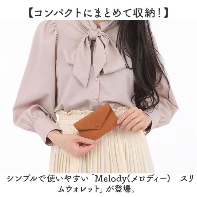 | 商品説明 | 【コンパクトにまとめて収納!】 ・シンプルで使いやすい「Melody(メロディー) スリムウォレット」が登場。 【上品な印象の本革】 ・シボ感のある牛革を使い、落ち着きのある仕上がりに。柔らかな質感で使うほどに味わいが増す。 【かわいいメール型デザイン☆】 ・小銭入れの開口部はスナップボタン式。外側にカードポケットを配置しているから取り出しやすい! 【使い勝手の良いサイズ感と収納力】 ・バッグに入れてもかさばらないスリムな形状。キャッシュレス派の方にもおすすめ。 【ユニセックス仕様】 ・無駄のないシンプルなデザインと落ち着きのあるカラー。幅広い年代で使えるので、ギフトにもおすすめ。 【ポケット仕様】 ・カードポケット×4、フリーポケット×2 |