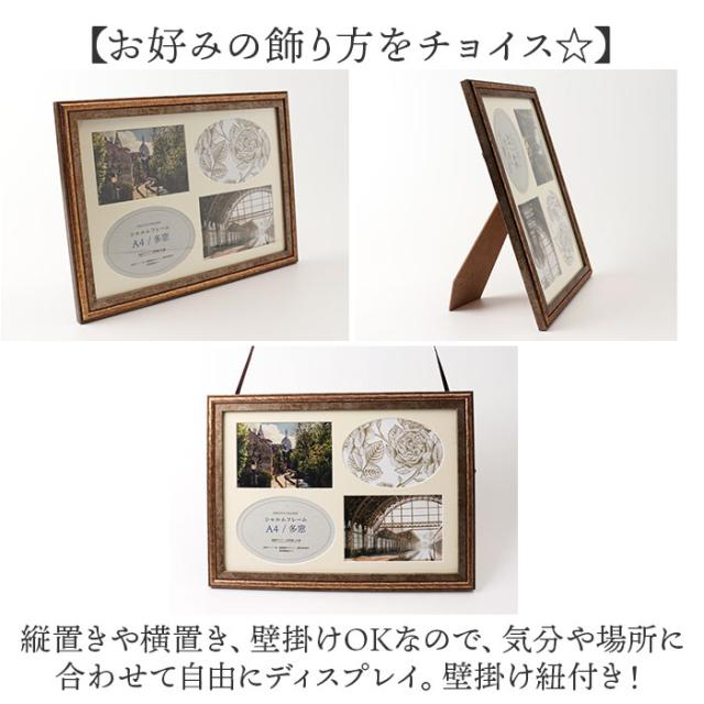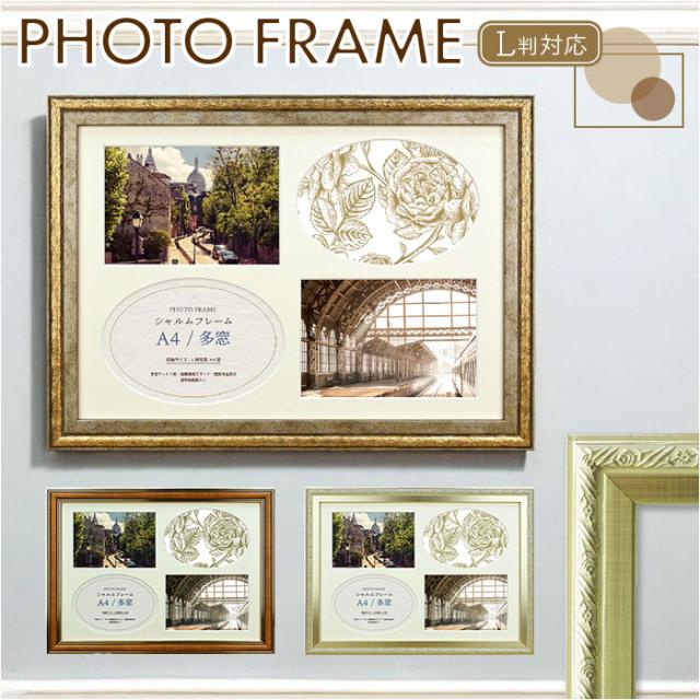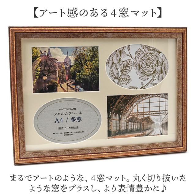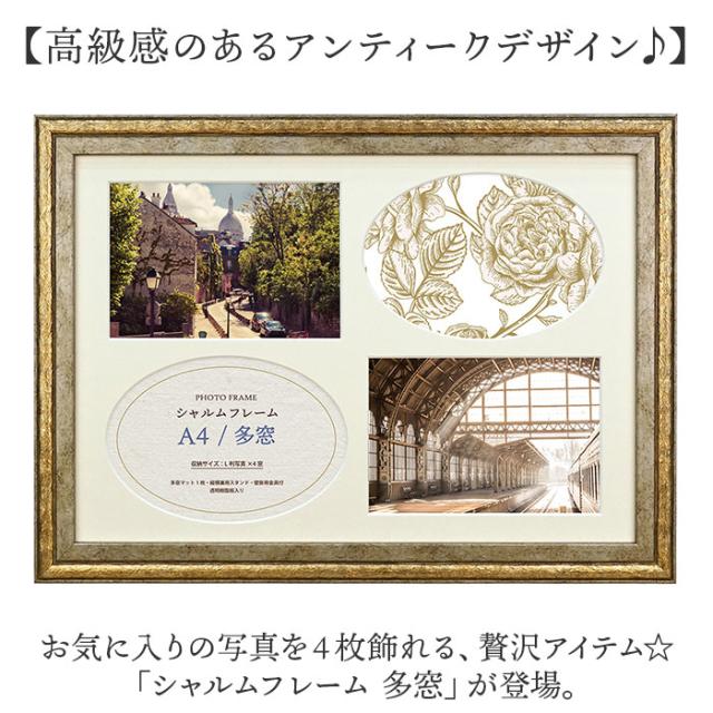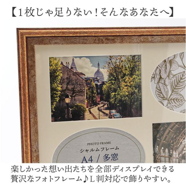 フレーム A4 通販 シャルムフレーム アンティーク額縁 フォトフレーム 額縁 飾る L版 A4判 4窓 オシャレ かわいい アンティーク 多窓 ファミリー 家族 ウェディング 玄関 リビング