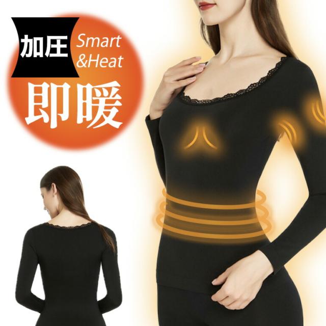 加圧インナー レディース ラウンドネック ヒートインナー 長袖 補正下着 レース 加圧シャツ 冬用 あったかい 暖かい 保温 快適 女性用 吸湿 発熱 くびれメイク インナー お腹 ウエスト 痩せ 細見せ 着圧 ダイエット ポイント消化 【12時まで注文当日発送】