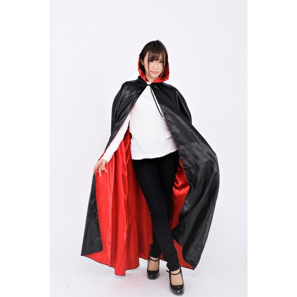 ハロウィン仮装にぴったりなフード付きマント。服の上から羽織れば簡単にドラキュラに変身。