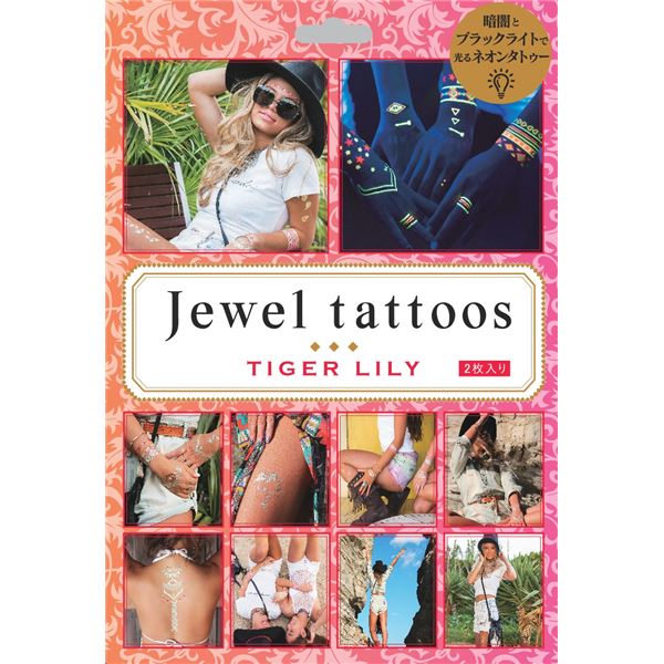 アクセサリー感覚で楽しめる水貼りタトゥーシール ファッションの新定番『ジュエルタトゥー』は、簡単に水だけで貼れる 華やかなデザインでコスプレやイベントを盛り上げる 自由なスタイルで個性を輝かせよう タトゥーシール/フェイクタトゥー 【TIGER LILY】 水だけで貼れる 『jewel tattoos』 〔コスプレ 仮装 イベント〕