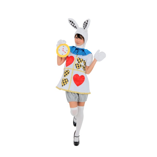 ハートのモチーフがかわいいラビットコスチュームです。童話に登場する白ウサギになりきれるかも。ハロウィン仮装、イベント、学園祭などでおススメです。