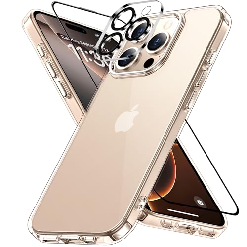 iPhone 16 Pro ケース クリア レンズ?ガラス保護付き 黄変防止 アイフォン16 プロケース 耐衝撃 アイフォン 16 ぷろケース 指紋防止 落